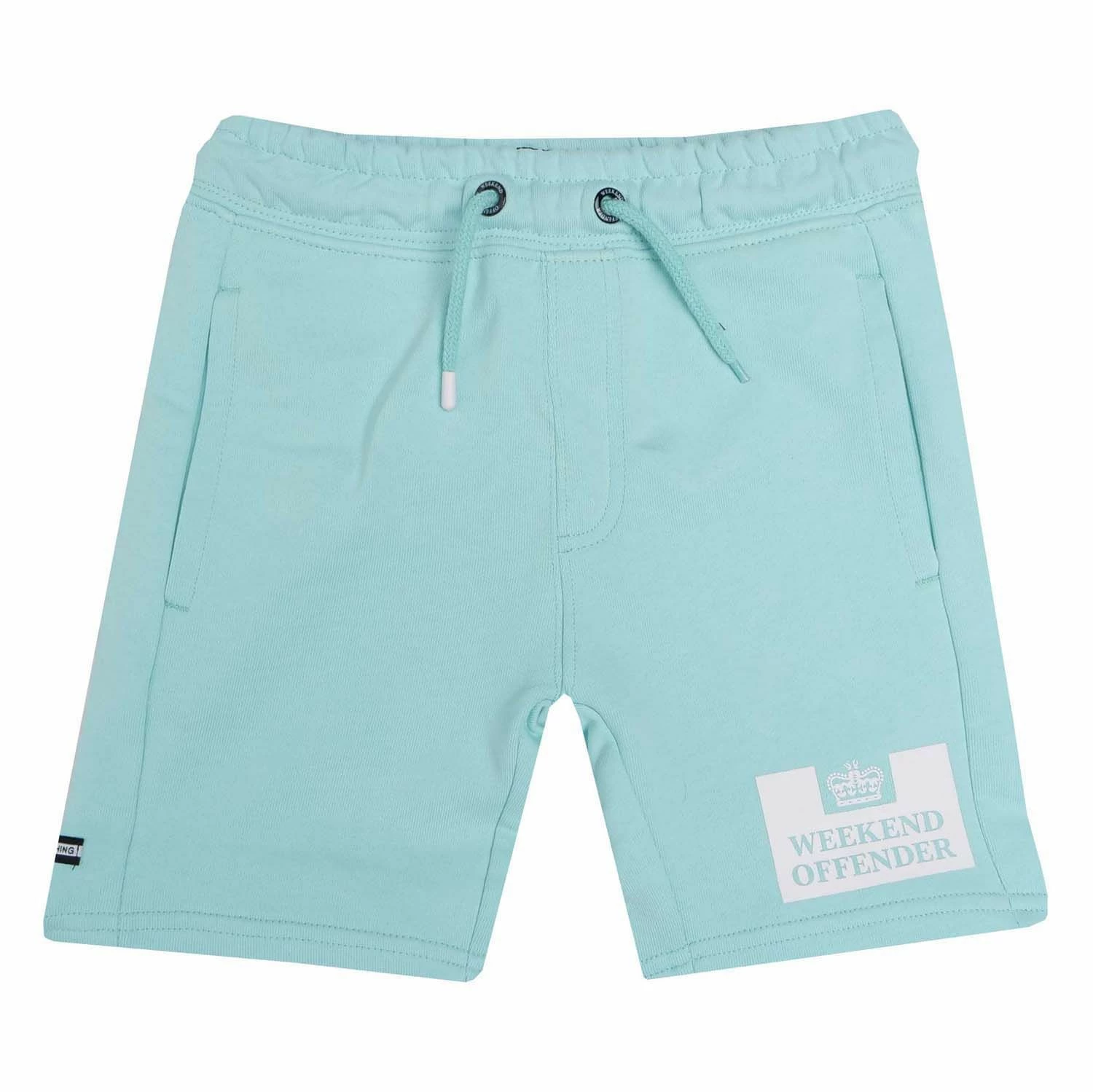 Infant Boys Weekend Offender Bension Shorts in aqua.- Elasticated ribbed waist with external drawcord.- Two open front pockets. – Wallet pocket with small high definition woven square badge.- Branded eyelets.- High density Smile print.- 100% Cotton.- Ref: KIDSSTSS2217A