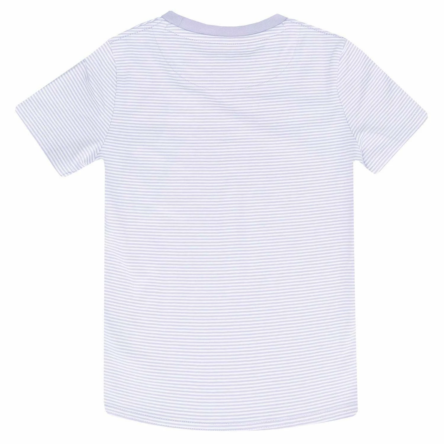 Infant Boys Weekend Offender Navarro Ave T- Shirt in lilac.- Fine rib neck.- Short sleeves.- W.O.A.N box print.- Yarn Dye fine stripe.- ‘Admit Nothing’ sign off.- 100% Cotton. – Ref:KIDSTSSS2210