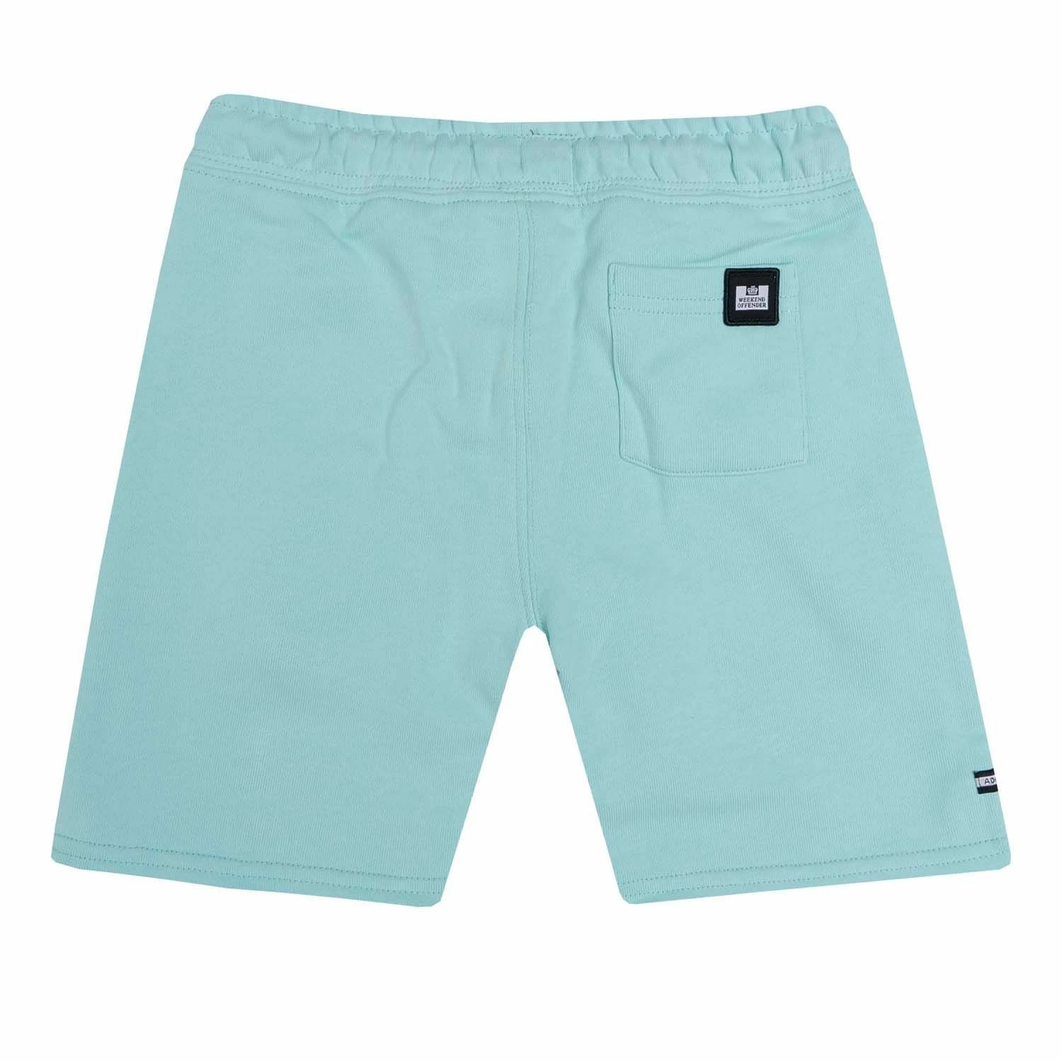 Junior Boys Weekend Offender Action Short in aqua.- Elasticated ribbed waist with external drawcord.- Side pockets.- Wallet pocket with small high definition woven square badge.- Branded eyelets.- Prison print logo.- ‘Admit Nothing’ sign-off.- 100% Cotton.- Ref: KIDSSTSS2207AJ