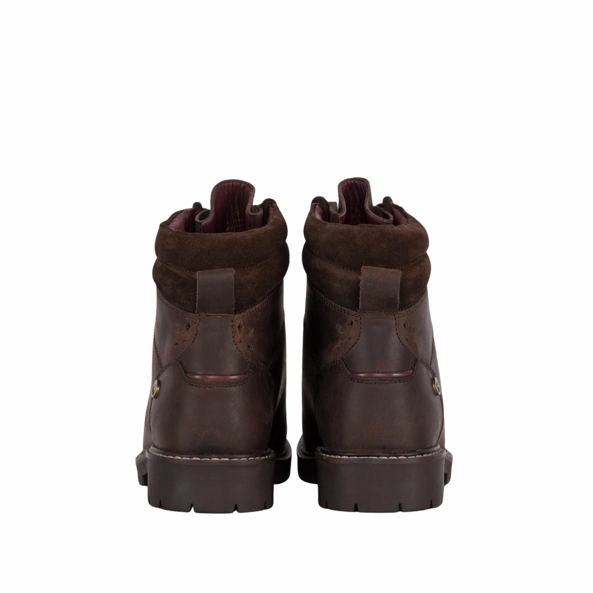 Angelina, hiking style boot. Premium Italian brown “Crazy horse” leather. Distressed, soft suede padded collar. Hiking eyelets and hooks. Diamond and circular punch detailing. Bottomed off with a durable ant-slip TPR sole. Comfort and style crafted into one. A great accessory for cropped straight-leg denims and midi dresses.
