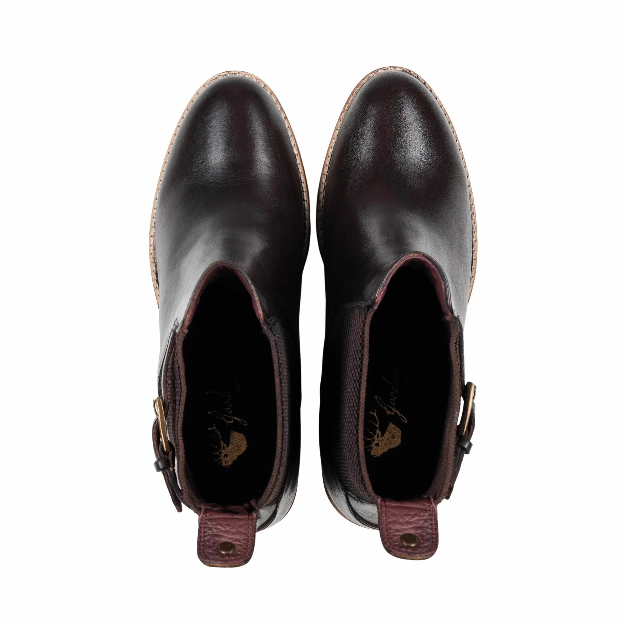Chloe, Chelsea ankle boot, in premium hand-dyed Italian “Cow crust” leather upper and strap. Soft honeycomb twin elastic side gussets for comfort. This classic wardrobe staple is certain to become a firm favourite in years to come. Also available in Tan and Black.
