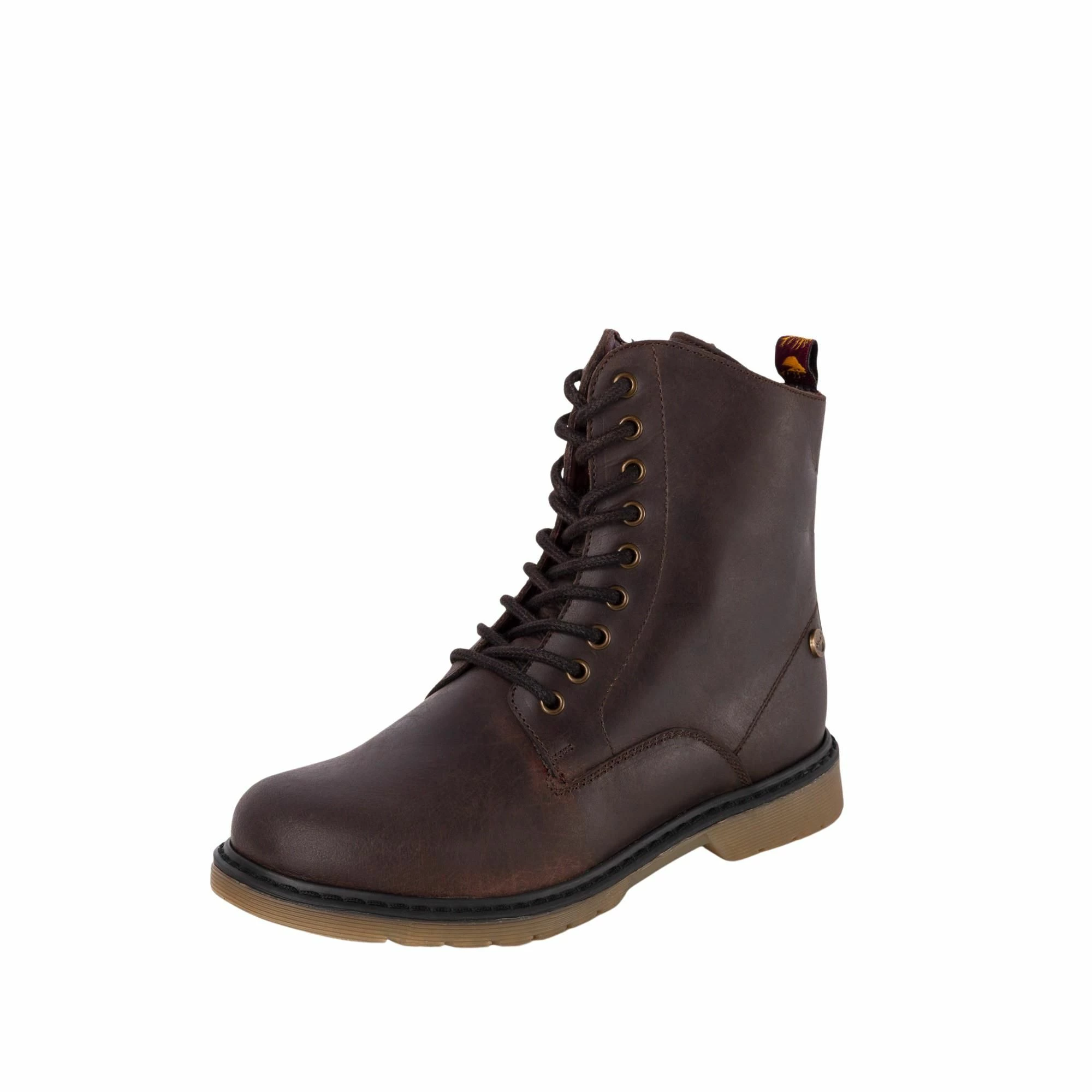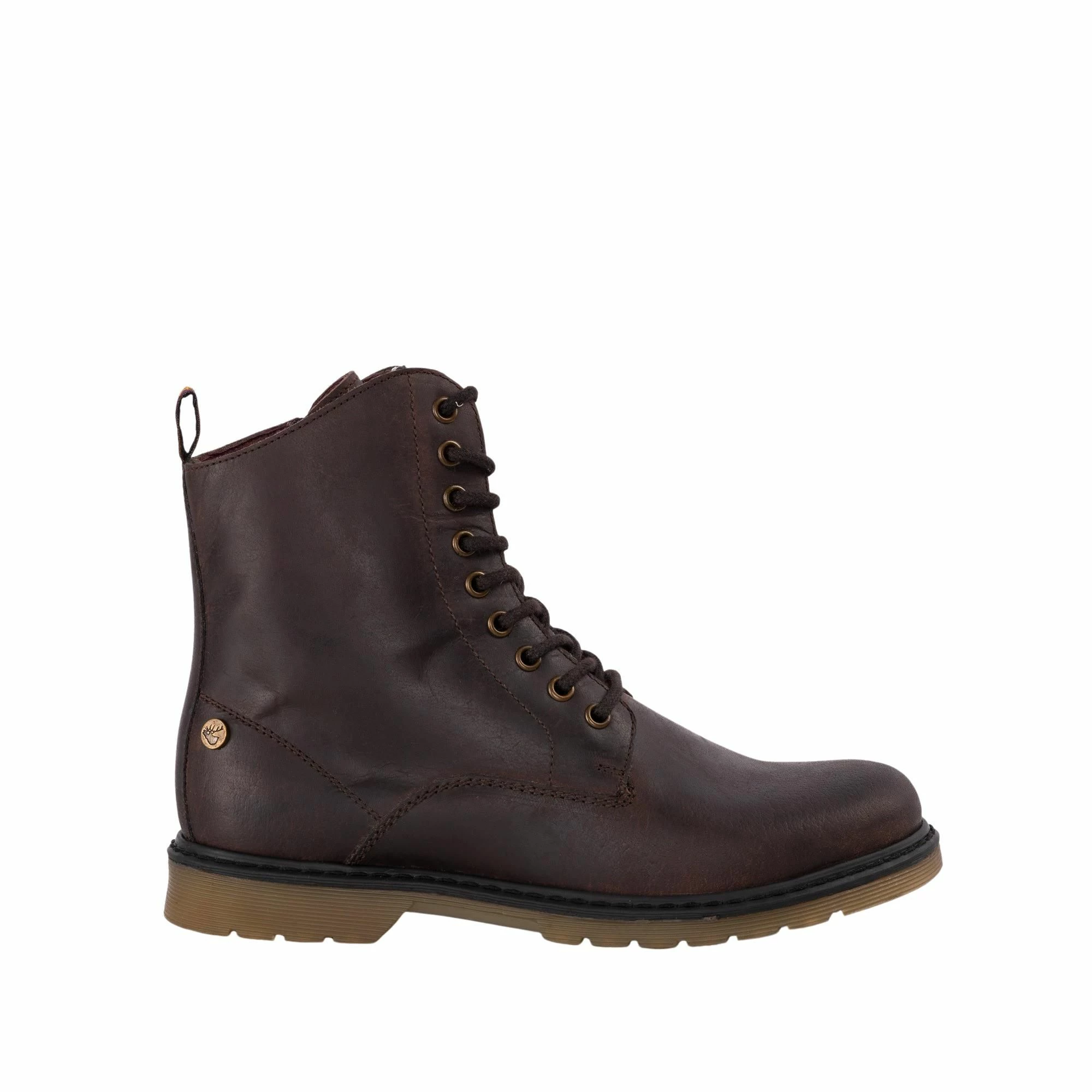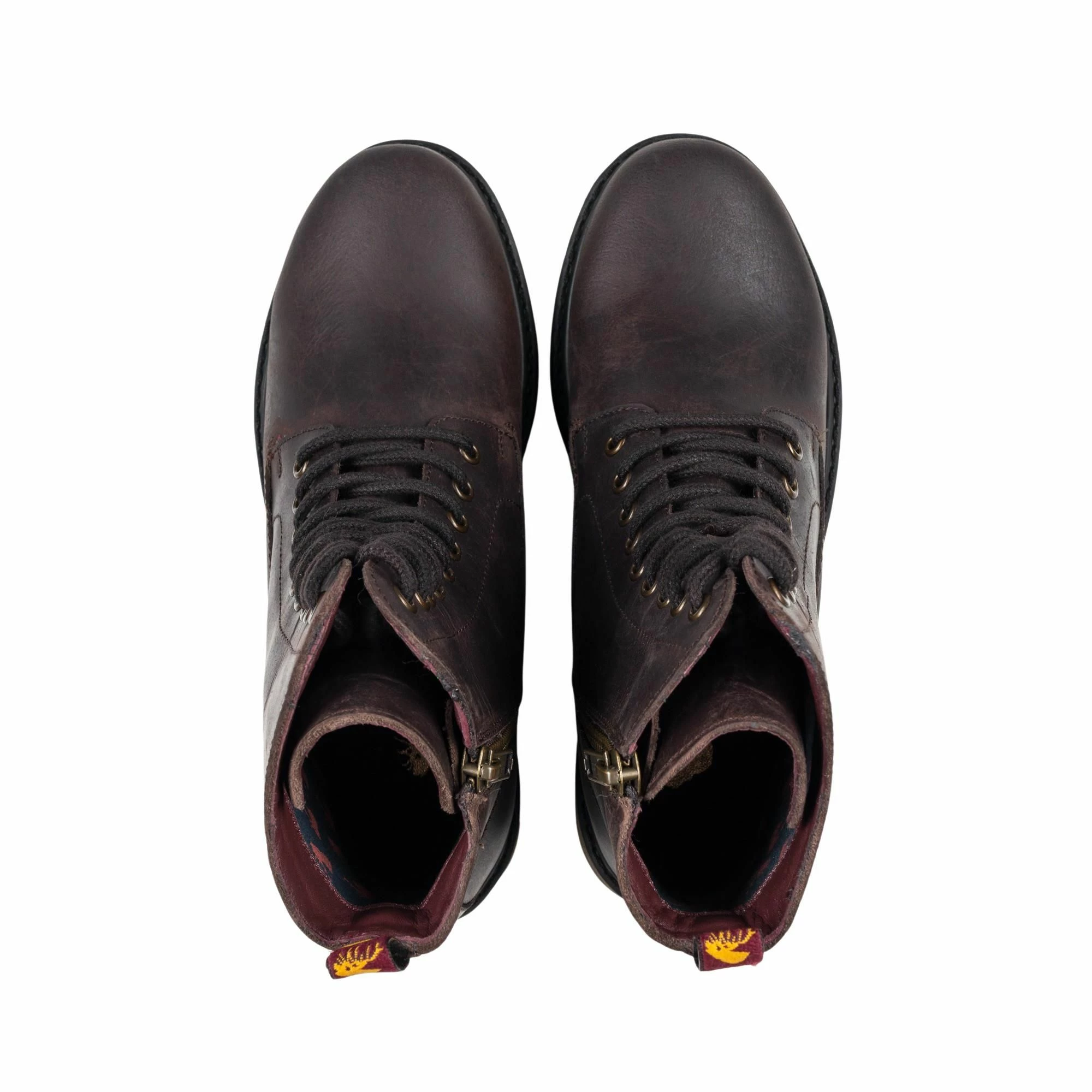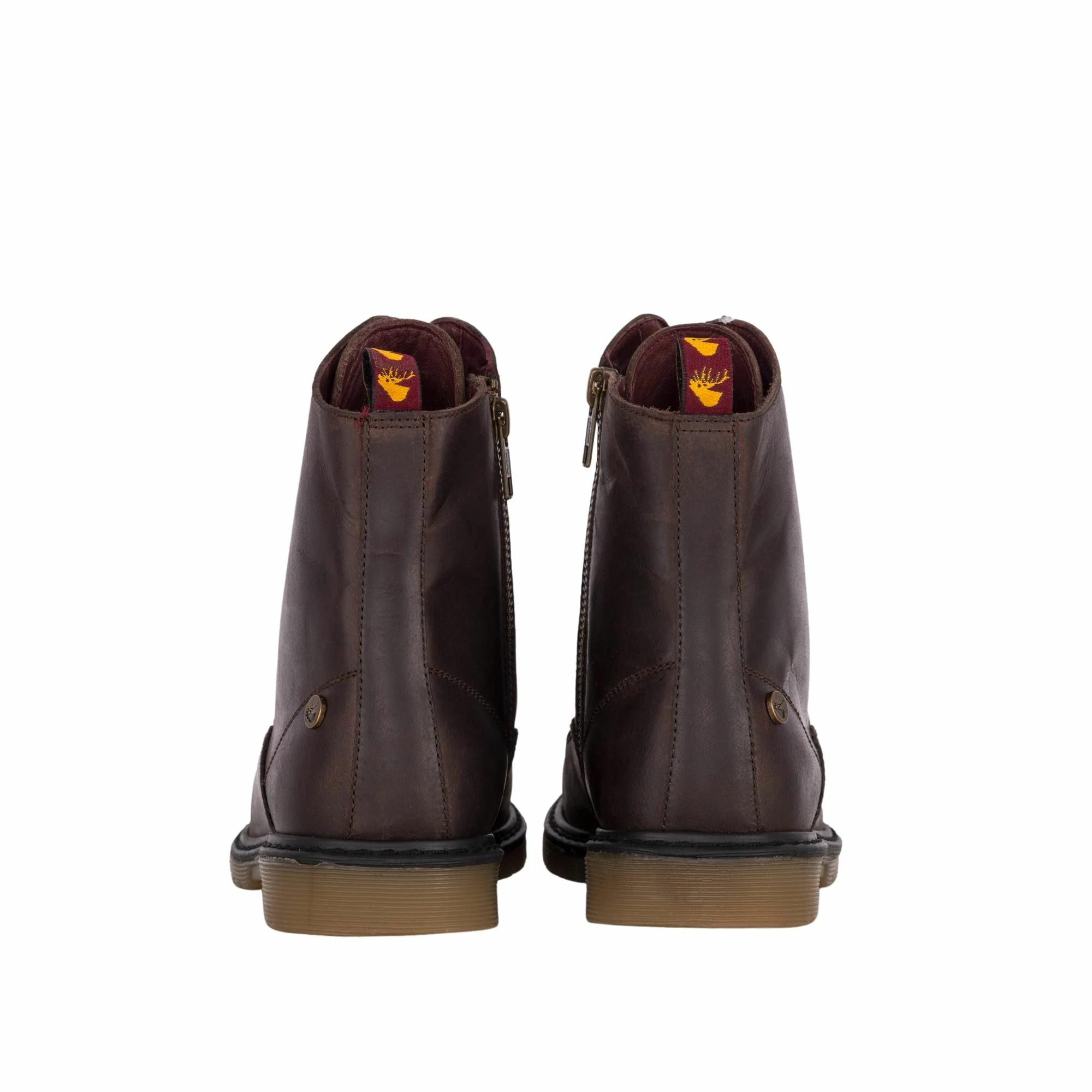 Sophie, commando style boot in premium oiled “Crazy horse” brown leather. Instep zip for when you’re far too late. Woven heel pull tab. Hand-lasted on a comfortable TPR sole unit with textured sidewalls. Also available in Black.