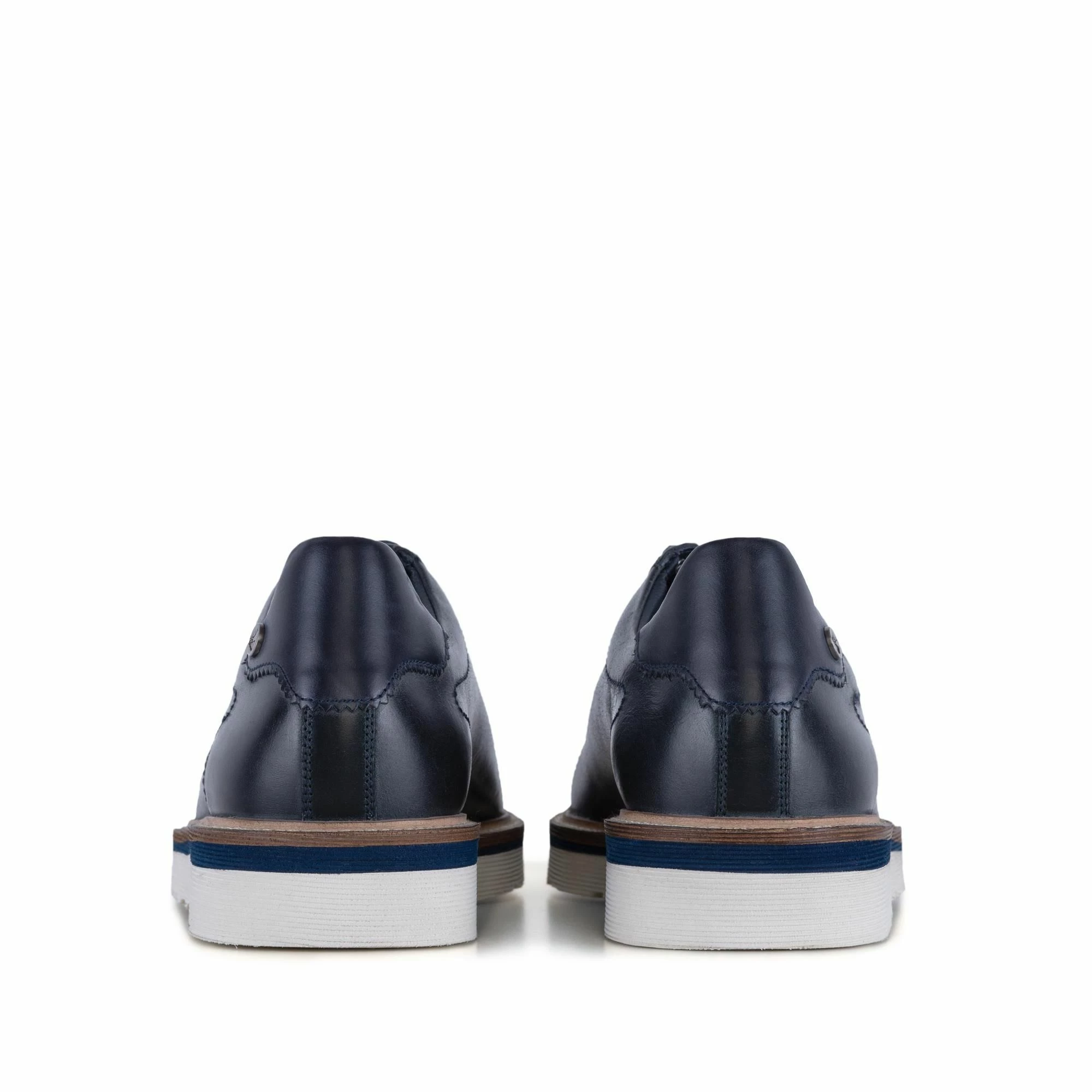 Dante is our smart casual derby shoe. A modern twist on a classic derby shoe teaming a hand burnished aniline leather upper with a stylish wedge unit. GS stag logo metal stud to heel. Leather and textile lining printed with GS stag logos and padded leather sock with GS logo embossed in gold. Durable TPR wedge unit with anti-slip tread detail topped with leather welt. Available in tan and navy.