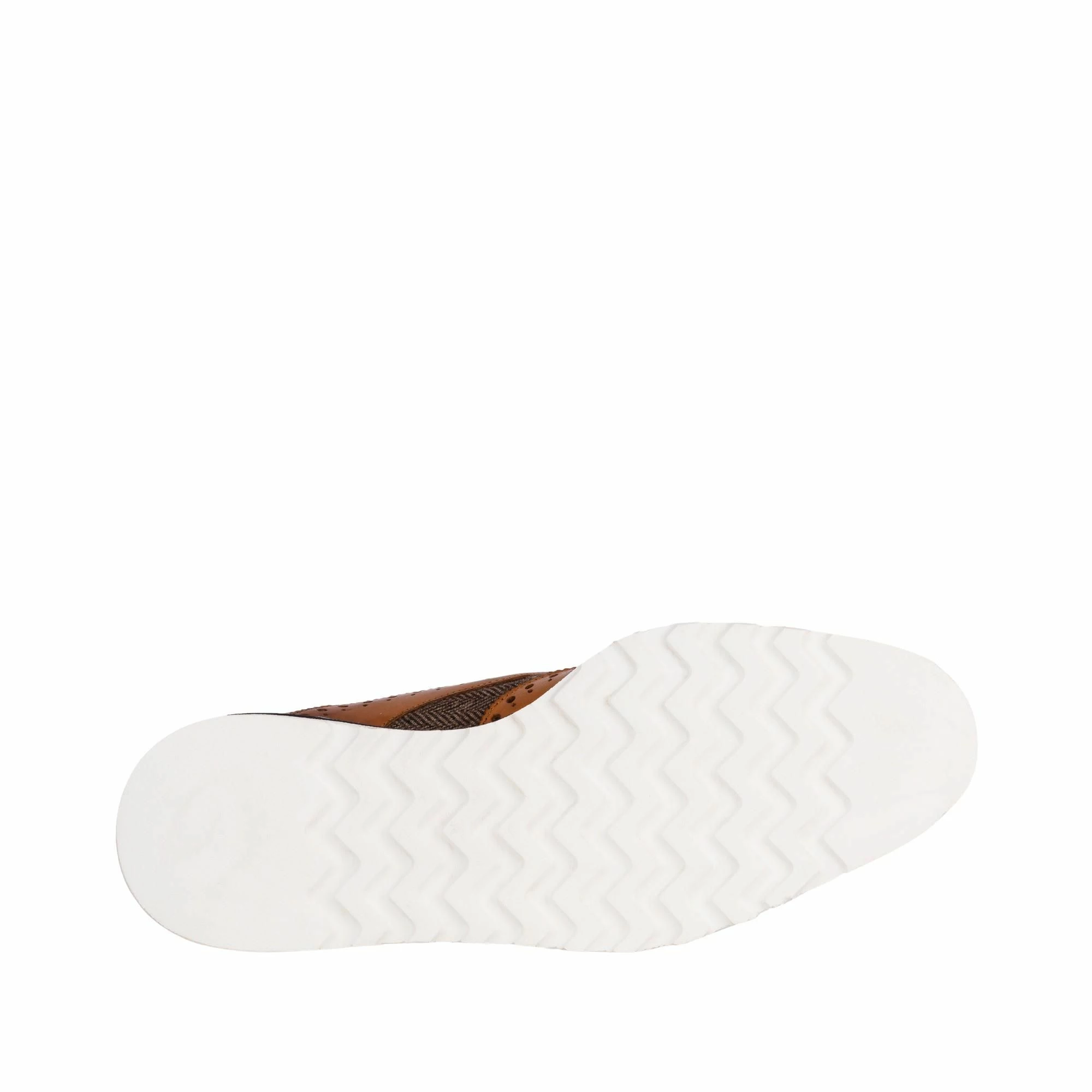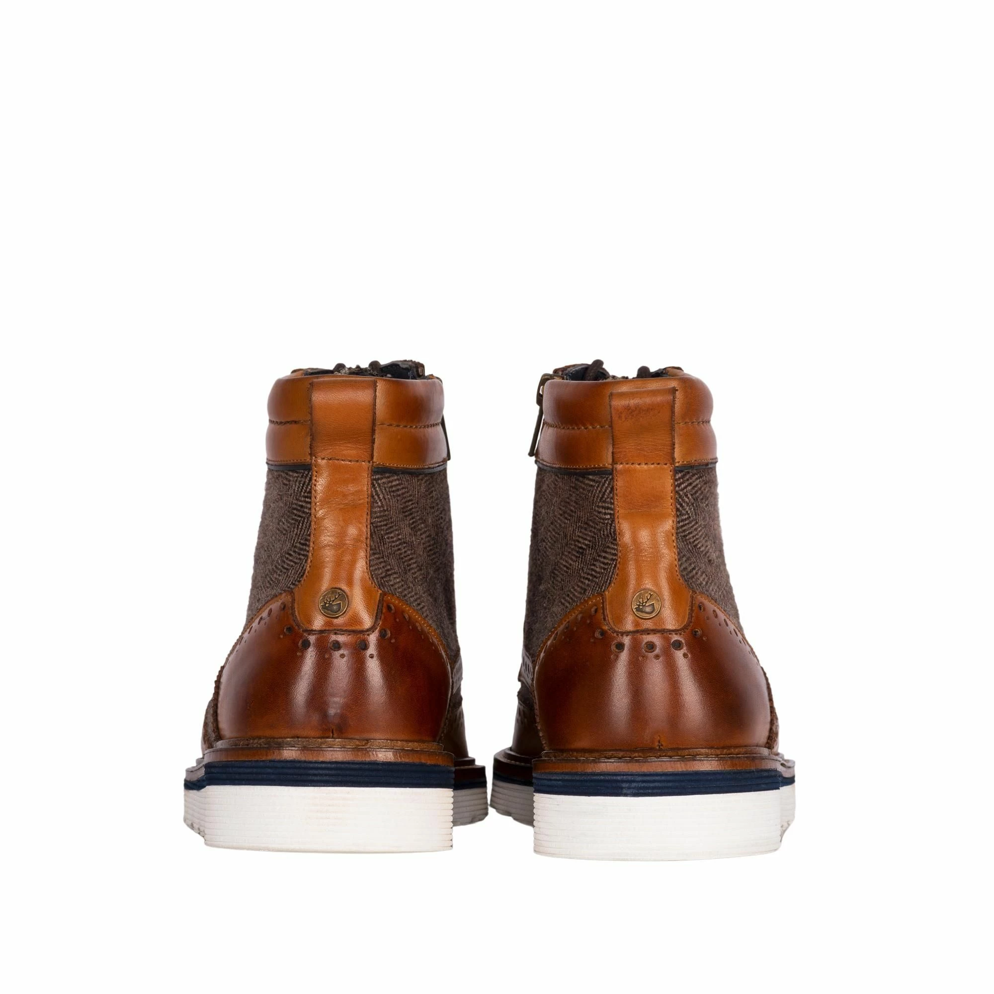 Linwood Tan casual, waxed leather-twill combination brogued boot on contemporary white anti-slip tyre-track EVA sole. Padded collar, serrated tongue edging, hiking eyelet detail. Brogue detailing to the forepart, brass GS Stag Stud. Leather and textile lining printed with GS stag logos and padded leather sock with GS logo embossed in gold. A masterpiece of footwear engineering! Limited edition. Also available in Bordo. Get it while you can.