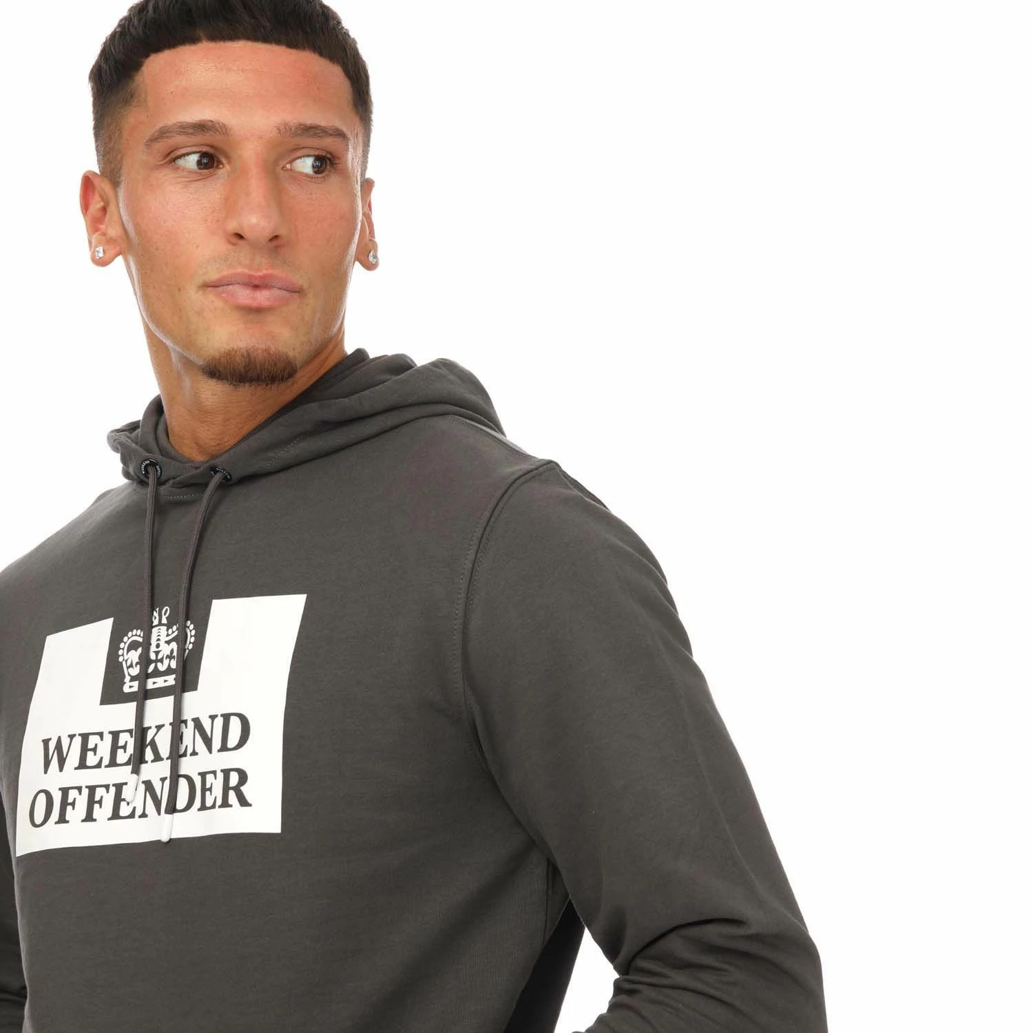 Mens Weekend Offender Garrison Logo Hoody in charcoal.- Hooded neckline.- Long sleeves.- Kangaroo pocket.- Rib-knit cuffs and hem.- Large Weekend Offender branding to the chest.- Regular fit.- 100% Cotton. – Ref: WOSHD501C