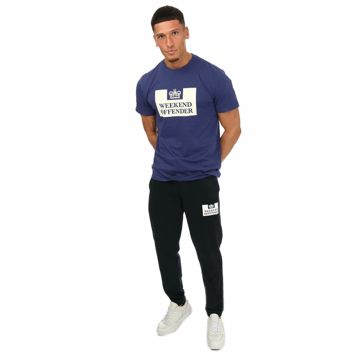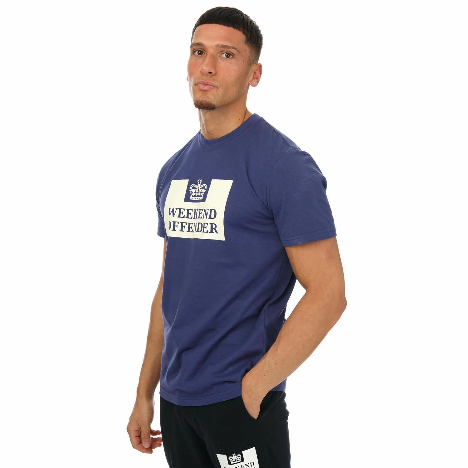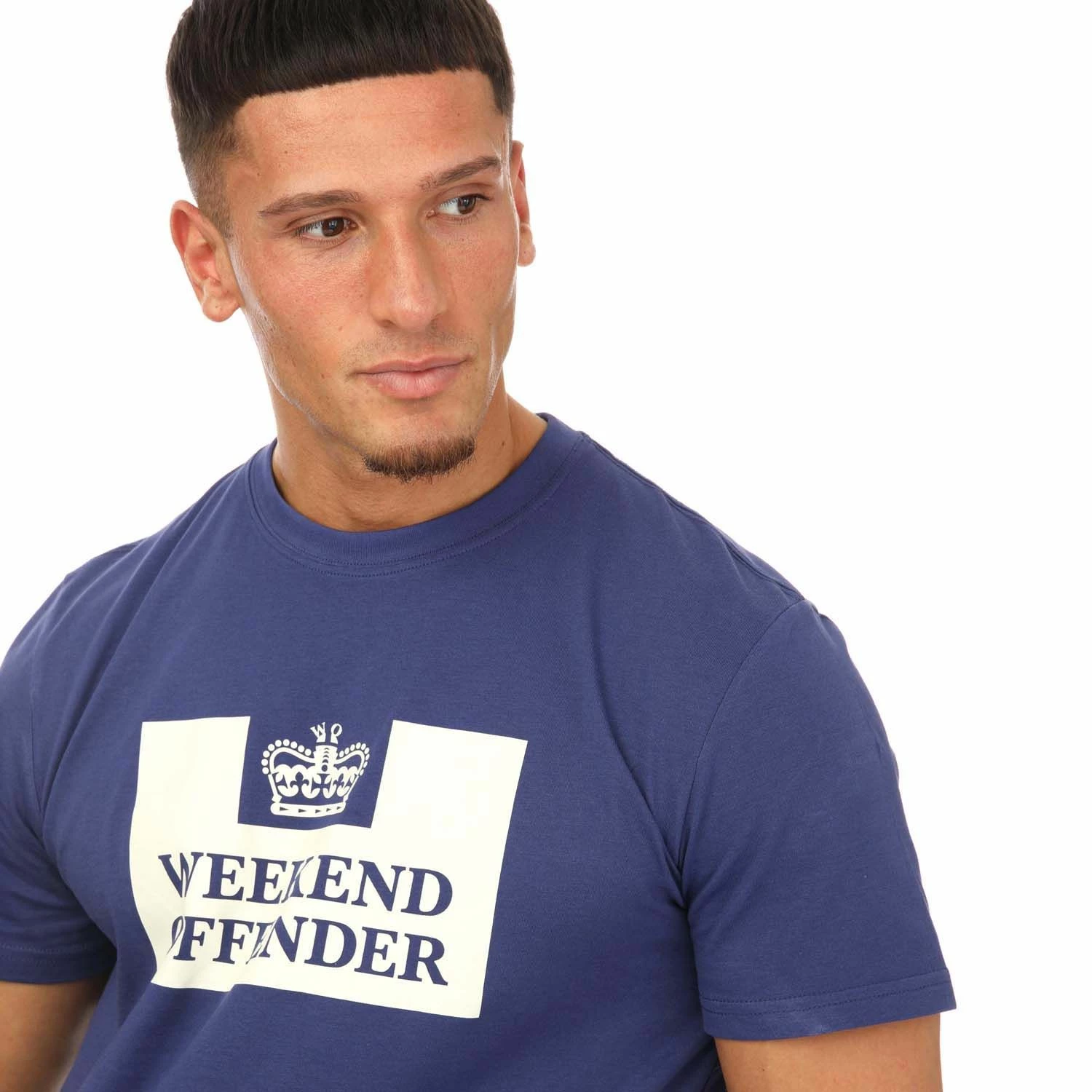Mens Weekend Offender McMoney T- Shirt in blue.- Ribbed crewneck.- Short sleeves.- Woven tab branding.- Large prison logo to front.- Regular fit.- 100% Cotton.- Ref:WOSTS510SSD