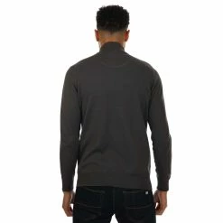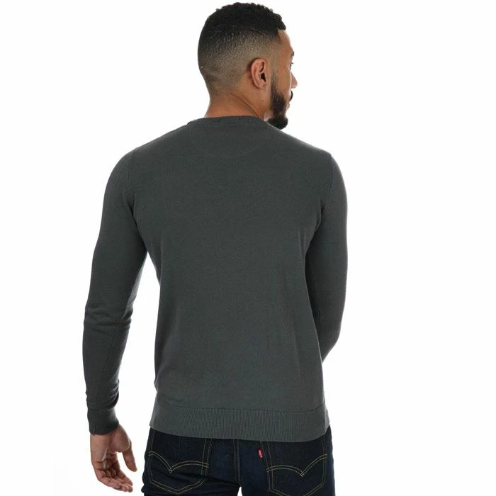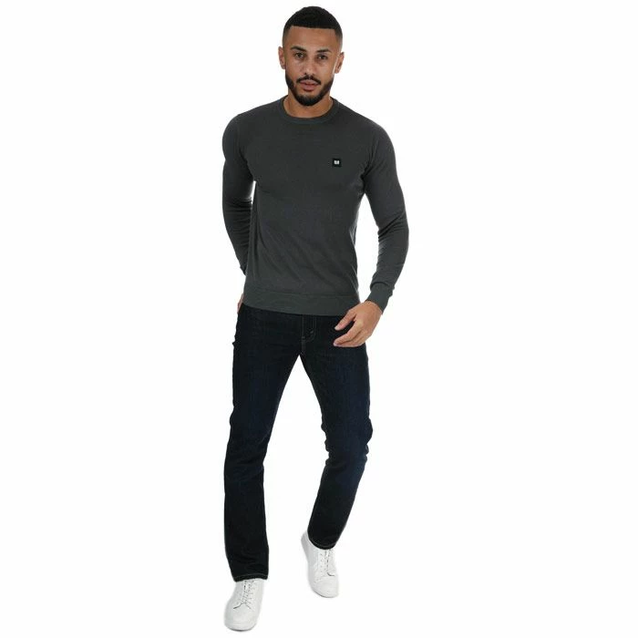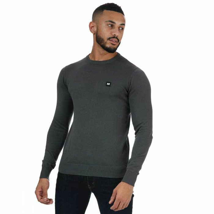 Mens Weekend Offender Silver Cotton Crew Knit in charcoal.-Ribbed crew neck.- Long sleeves.- Ribbed cuffs and collar.- Weekend Offender embroided logo patch on chest.- Main material: 100% Cotton. Machine washable. – Ref: WOSKW501C