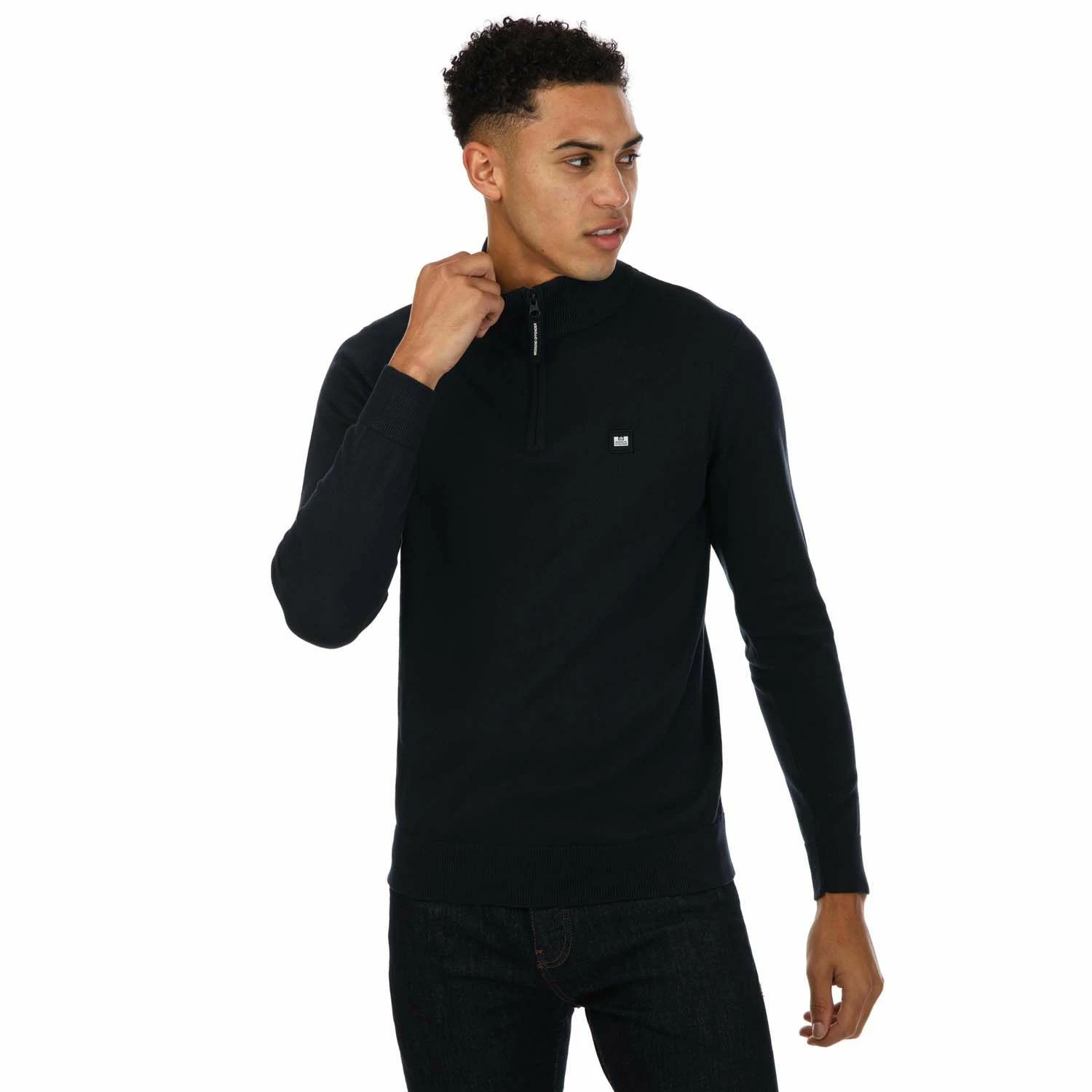 Mens Weekend Offender Vandium ¼ Zip Knit in navy.- Funnel neck.- Half zip fastening.- Long sleeves.- Ribbed cuffs and hem.- Weekend Offender embroided logo patch on chest.- Warm knit construction.- Main material: 100% Cotton.- Ref:WOSKW503N